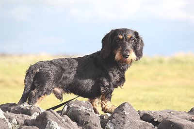 Beschreibung: Richterbericht vom 18.09.2016 BU 44cm, ein kompakter, schwarzroter Rüde des mittleren Schlages, korrekter Brand, harsche Behaarung mit etwas Unterwolle, typvoller Kopf, kräftiger Bart, in der Bewegung mit frei getragenem Kopf, gerader, fester Rücken, korrekte Kruppe, passender Bodenabstand, VV und HH richtig gewinkelt und geführt, im Stand mit korrekt gestellter VH, ausreichend Vorbrust, freundliches Verhalten, sehr gut bemuskelt.