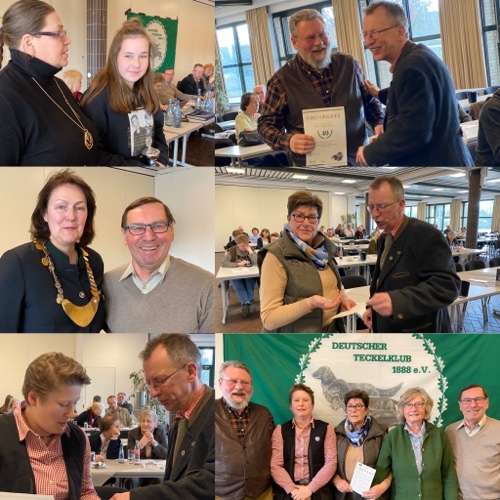 In der gut besuchten Versammlung wurden die Zahlen des Jahres 2018 präsentiert: Im Bereich des LVN fanden 8 Zuchtschauen statt, in denen 218 Teckel (48 Kh, 127 Rh, 43 Lh) gezeigt wurden. In 3 Katalogschauen präsentierten sich 239 Teckel (74 Kh, 92 Rh, 73 Lh). Die Züchter in den Gruppen des LVN verzeichneten 66 Würfe (42 St, 18 Zw, 6 Kt) mit 164 Rüden und 143 Hündinnen. 46 jagdliche Prüfungen wurden mit 234 Gespannen durchgeführt. In den 33 BHP(S)-Prüfungen stellten sich 174 Teilnehmer.Im Mittelpunkt der Veranstaltung stand, wie in jedem Jahr, die Ehrung und Auszeichnung verdienter Mitglieder.